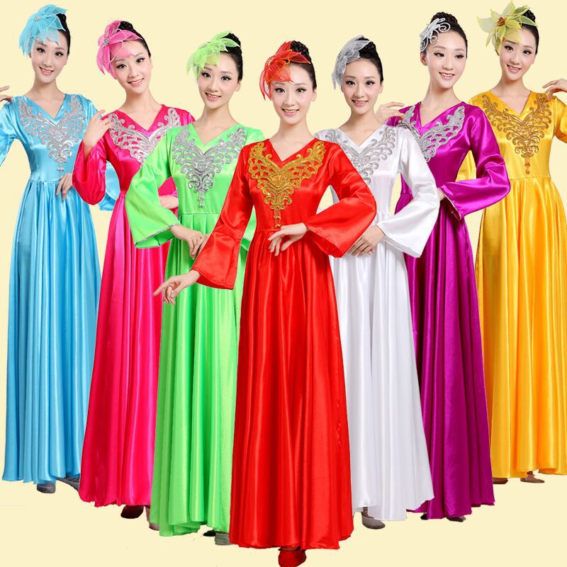 Pakaian paduan suara wanita panjang, pakaian penampilan tari etnik dewasa modern lebar musim gugur dan musim dingin