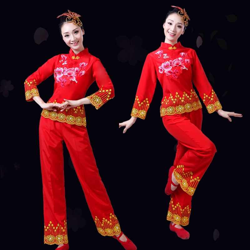 Pakaian wanita Yangge, pakaian dansa persegi baru 2023, pakaian drum pinggang timur laut, pakaian penampilan tari penggemar usia menengah dan orang tua
