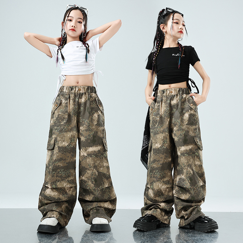 Pakaian penampilan tari jazz wanita pakaian fashion catwalk jazz wanita celana kamuflase keren anak-anak setelan hiphop hip hop