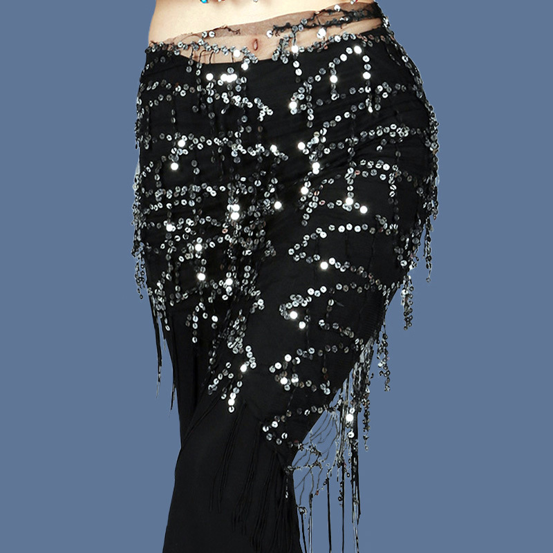 Rok pinggul dansa perut, syal rumbai berpayet segitiga, rantai pinggang kinerja, sabuk handuk pinggul, handuk pinggang Halloween