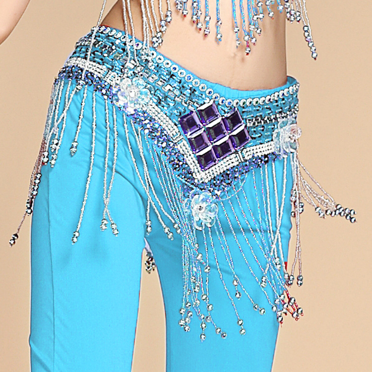 Setelan pakaian tari perut, baju latihan pertunjukan tari India baru, manik-manik buatan tangan, segel pinggang bordir wanita musim semi dan musim panas