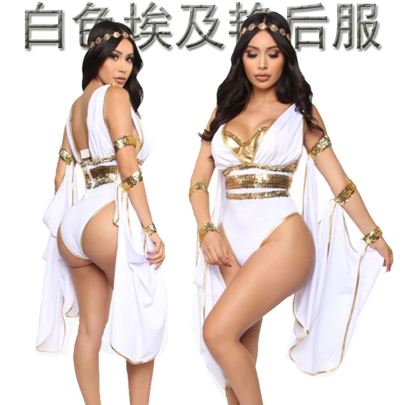 Pakaian dewi seksi putih baru seragam permainan Halloween India pakaian Arab Cleopatra seragam