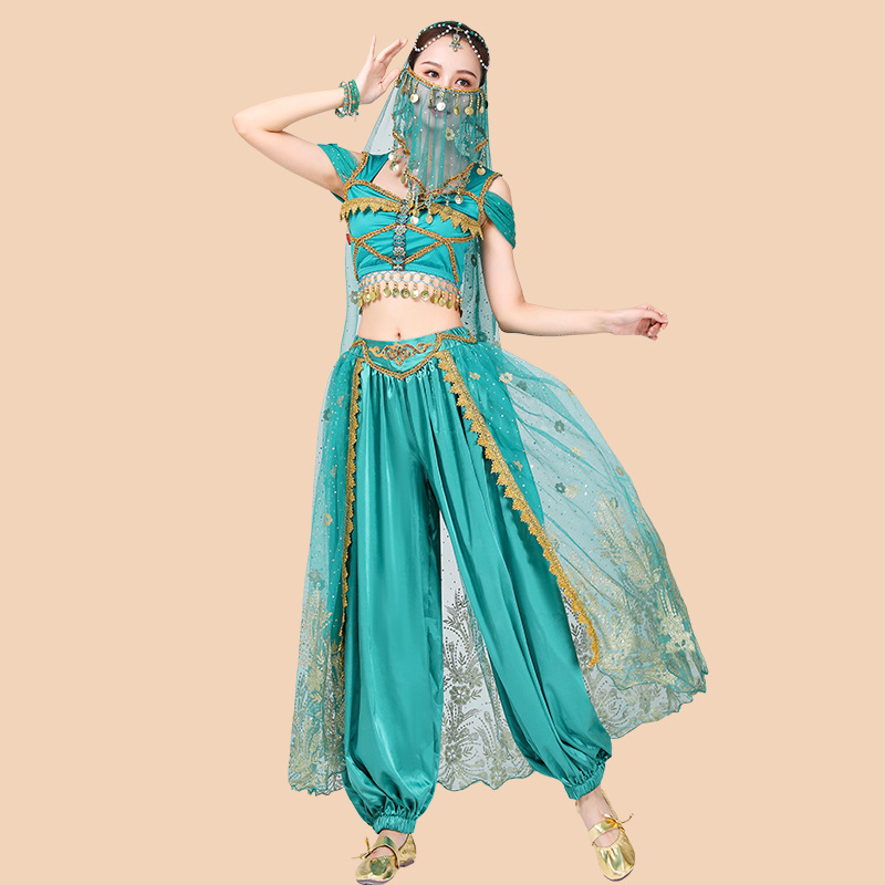 Halloween Dunhuang Jasmine padang pasir baju dansa putri wanita dewasa jam tangan dansa India baju performa gaya eksotis setelan