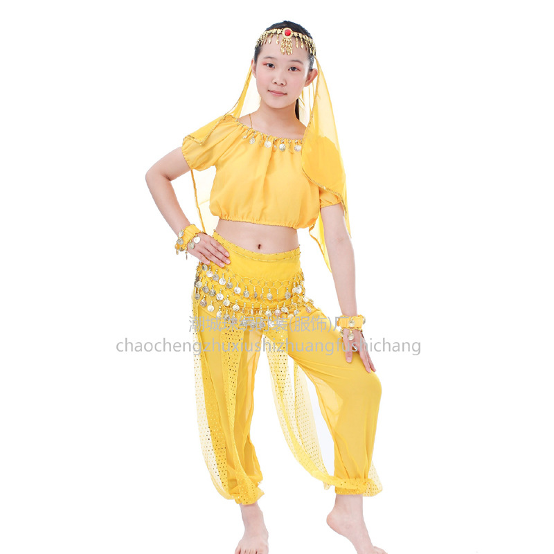 Pakaian tari perut anak-anak setelan latihan tari India 1 Juni pakaian lengan pendek lentera sorot baru