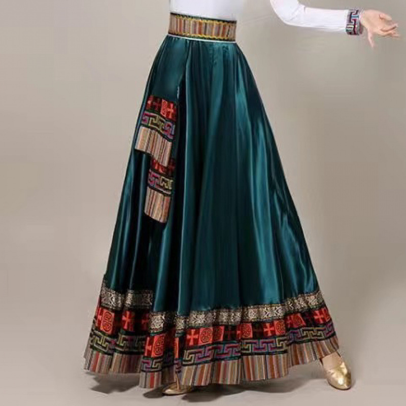 Pakaian Tari Xizang Rok Setengah Badan Wanita Rok Panjang Praktik Tes Seni Rok Tari Latihan Seni Pakaian Pertunjukan Rok Besar Gaya Etnik Model Panjang