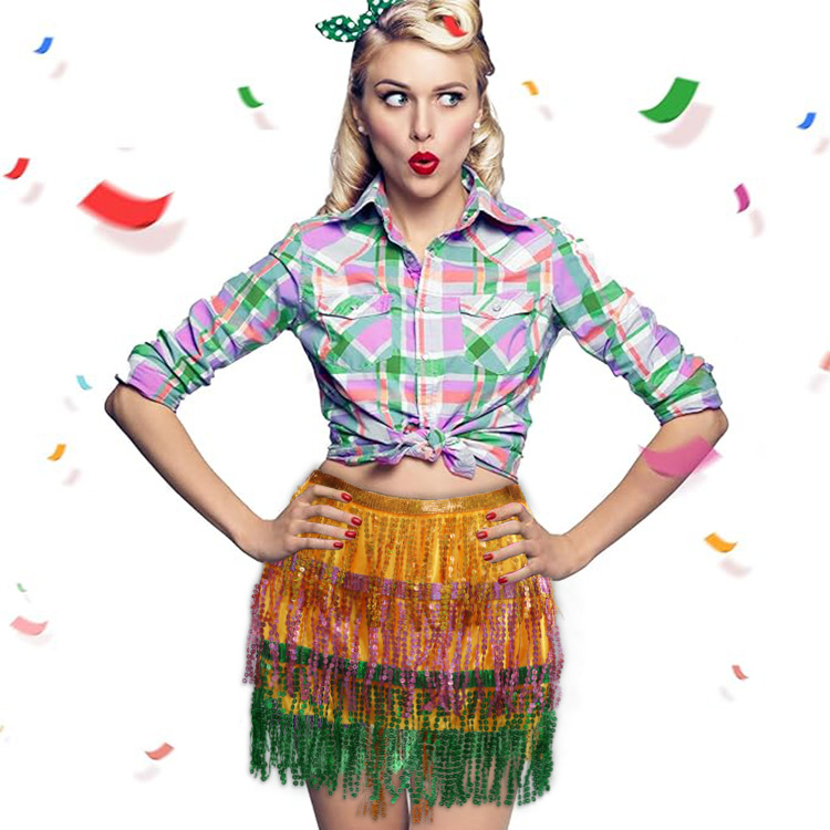 Handuk pinggang pesta karnaval, rok rumbai festival kinerja tari perut manik-manik 4 lapis berpayet