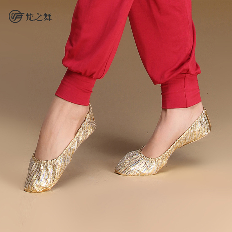 Fanzhi sepatu dansa perut, sneaker India Emas bawah lembut untuk latihan penampilan tari