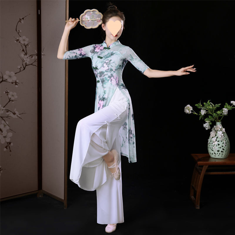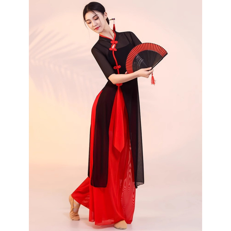 Cheongsam Tari Klasik Model Baru Pakaian Latihan Rhyme Pakaian Pertunjukan Nasional Tari Tiongkok Atasan Dewasa Wanita