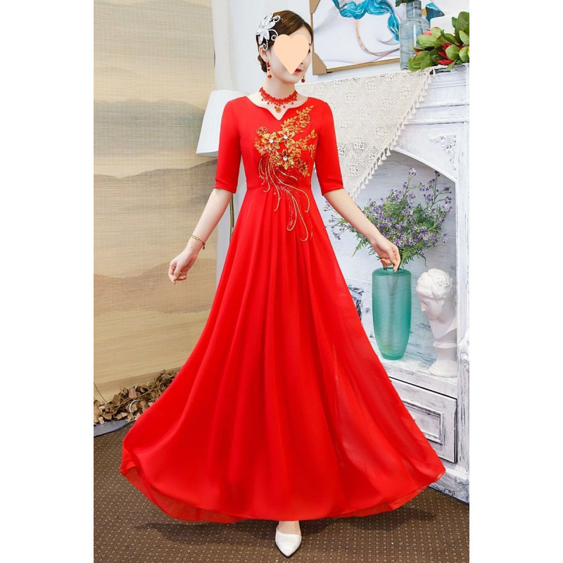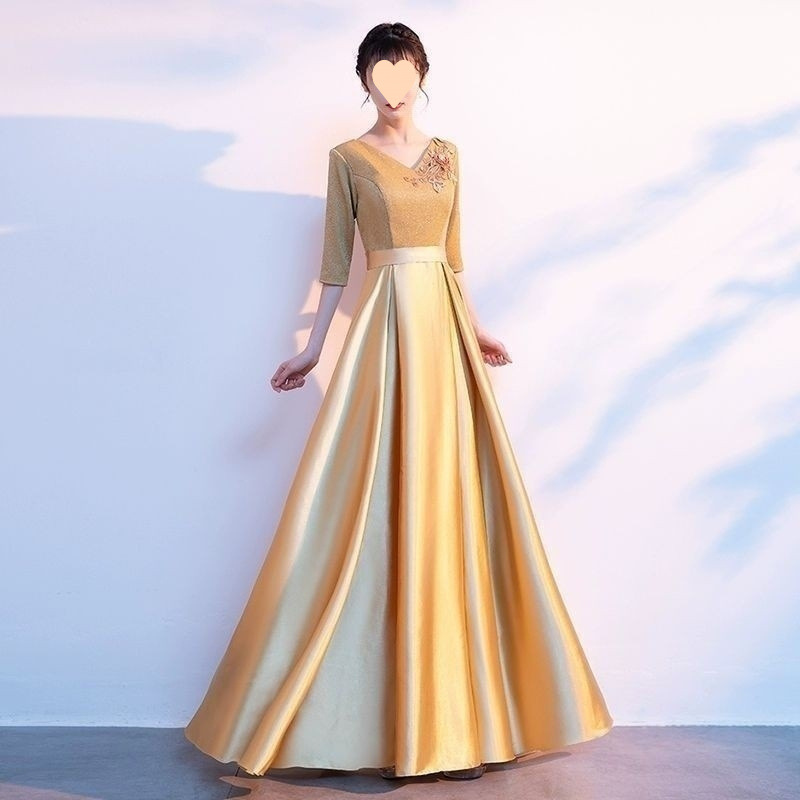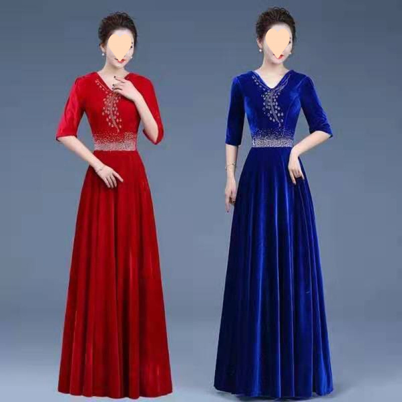 Pakaian Pertunjukan Paduan Suara Besar Rok Panjang Wanita Model Baru Pakaian Beludru Emas Setengah Baya dan Tua Bernyanyi Gaun Konduktor Model Panjang