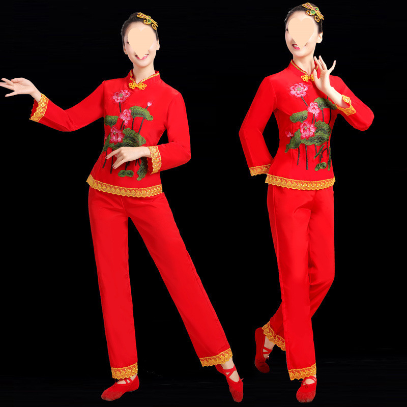 Jas Pertunjukan Yangge Jas Drum Setengah Baya dan Lansia Gaya Tiongkok Model Baru Kipas Klasik Grup Wanita Tarian Lapangan Set