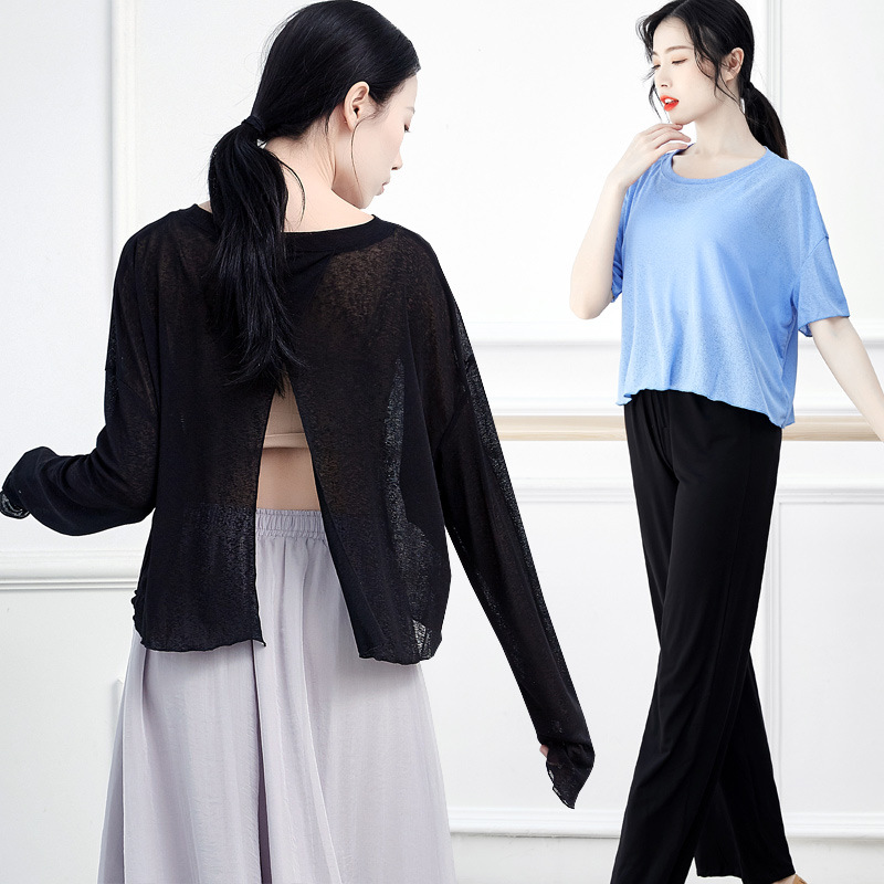 Pakaian latihan dansa jazz klasik Modern, blus kostum untuk wanita, atasan tari belakang longgar, Model terpisah