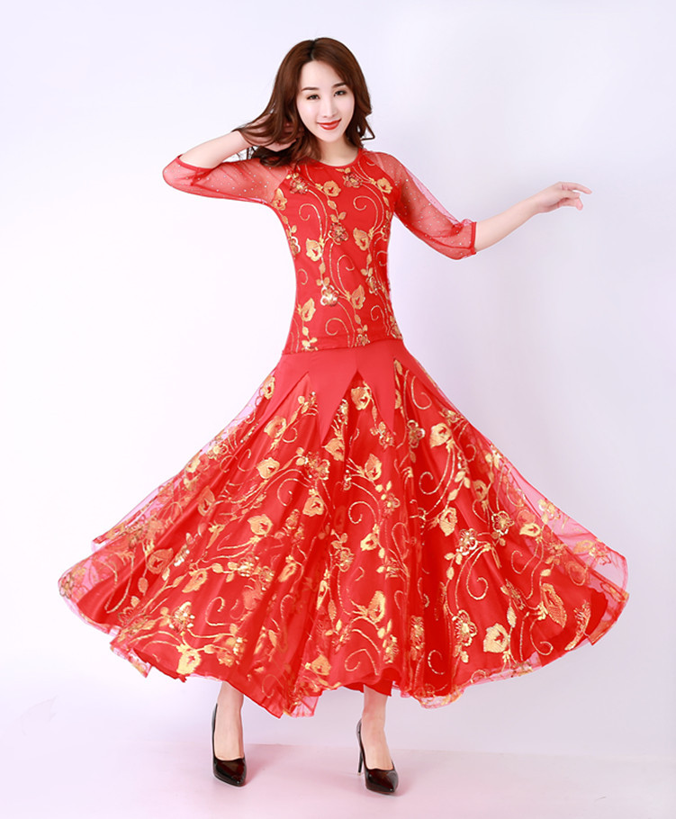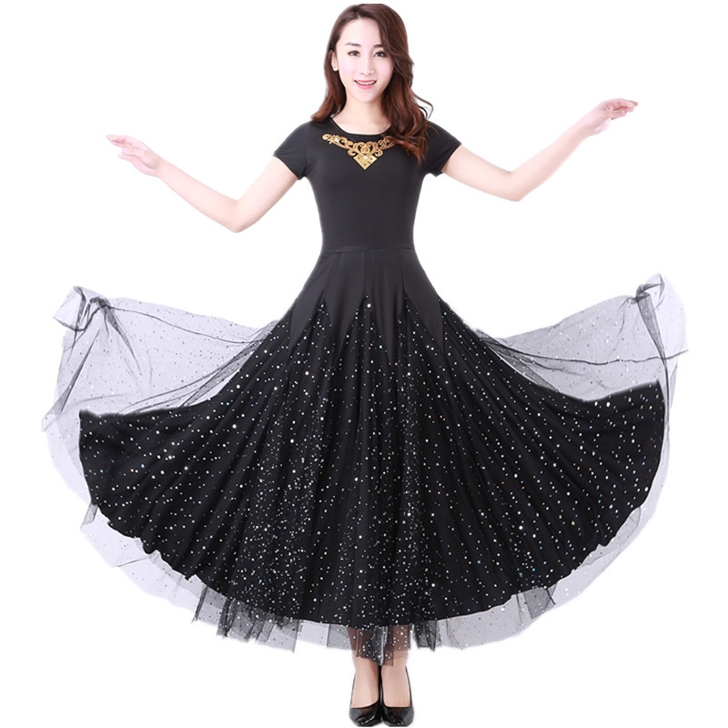 Kostum dansa, kostum tari Modern ballroom, kostum penampilan waltz, Rok dansa ayunan besar lengan setengah