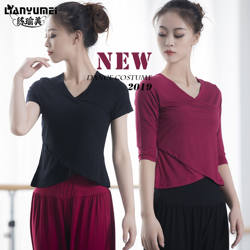 Pakaian latihan dansa longgar Atasan wanita dewasa bentuk modal pakaian hitam pakaian tari etnik guru klasik