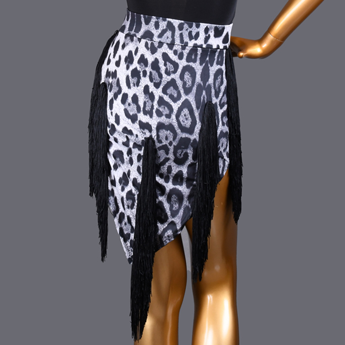 Rok dansa Latin rok tidak beraturan motif macan tutul baru rok rumbai enkripsi hanya pakaian latihan penampilan wanita dewasa