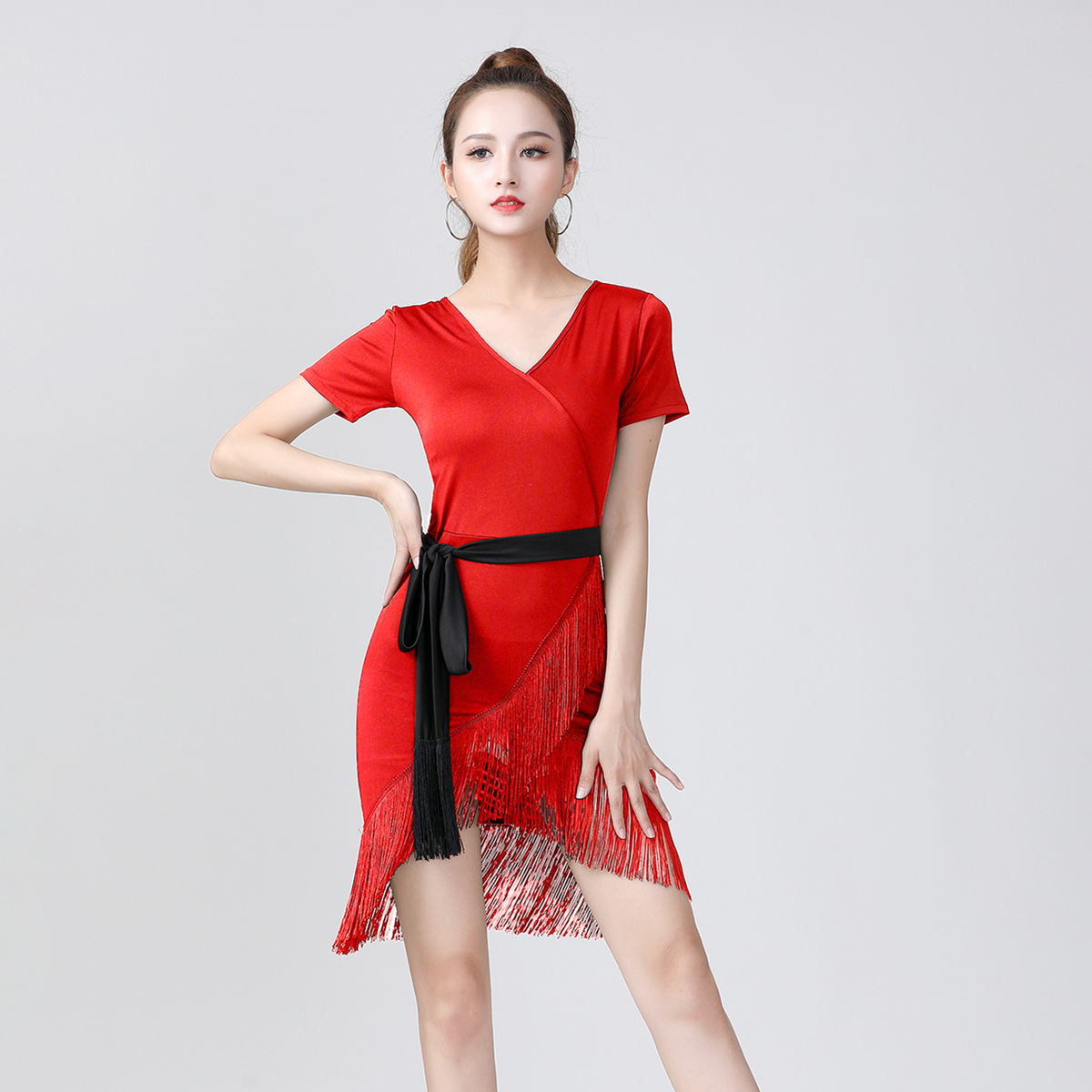 2023 empat musim baru pakaian dansa Latin wanita dewasa high-end ramping lengan pendek rumbai gaun latihan lengan pendek pakaian