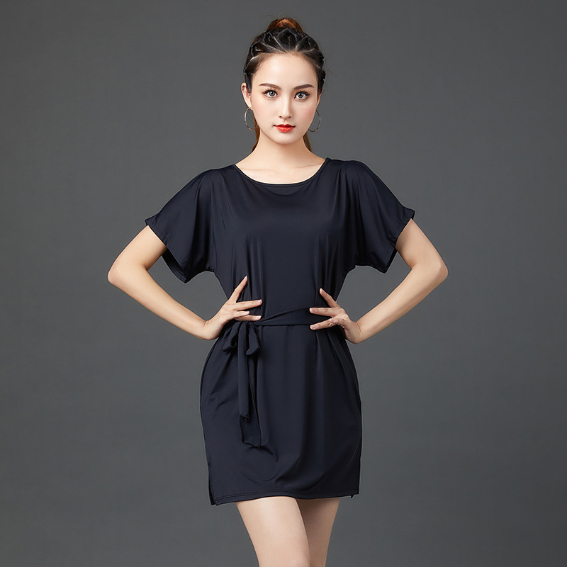 Rok dansa Latin baru longgar musim semi dan musim panas pakaian latihan lengan pendek rok dansa dewasa seksi hitam wanita