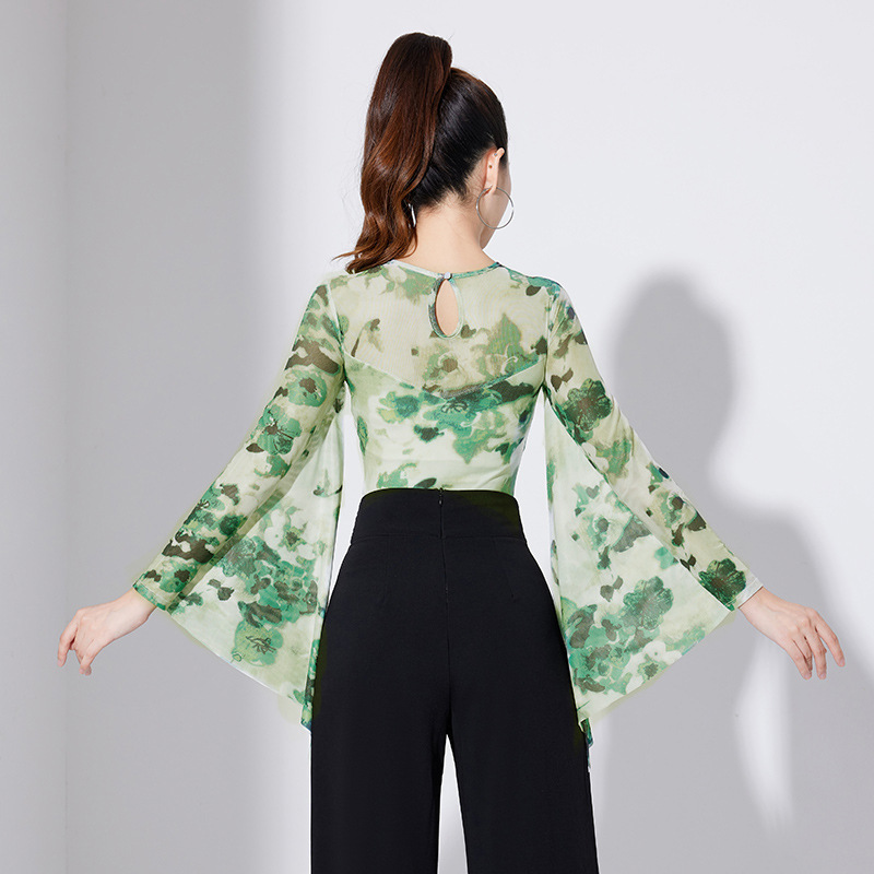 Latin pakaian dansa wanita baru lengan panjang pakaian dansa ballroom mesh lengan mengambang modis tari Modern atasan 2023
