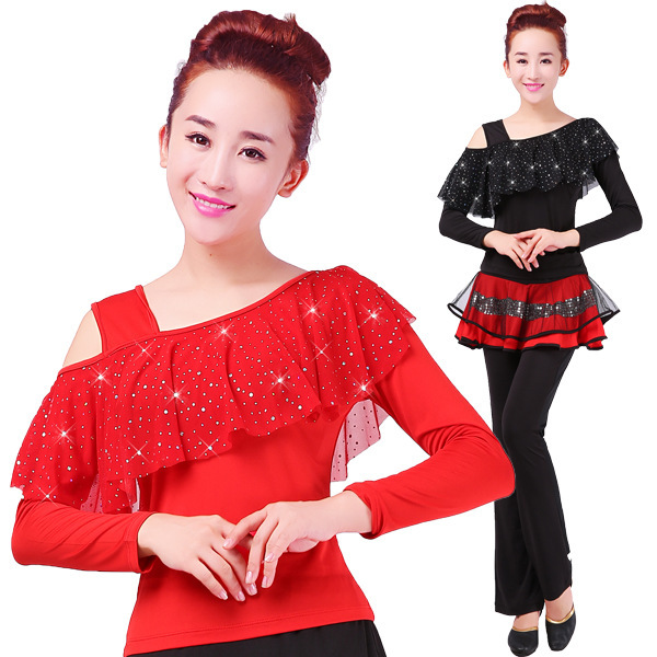 Pakaian dansa persegi atasan lengan panjang, pakaian dansa Yunshang Yang Yi atasan lengan panjang baru musim panas 2016 pakaian penampilan usia sedang dan lama