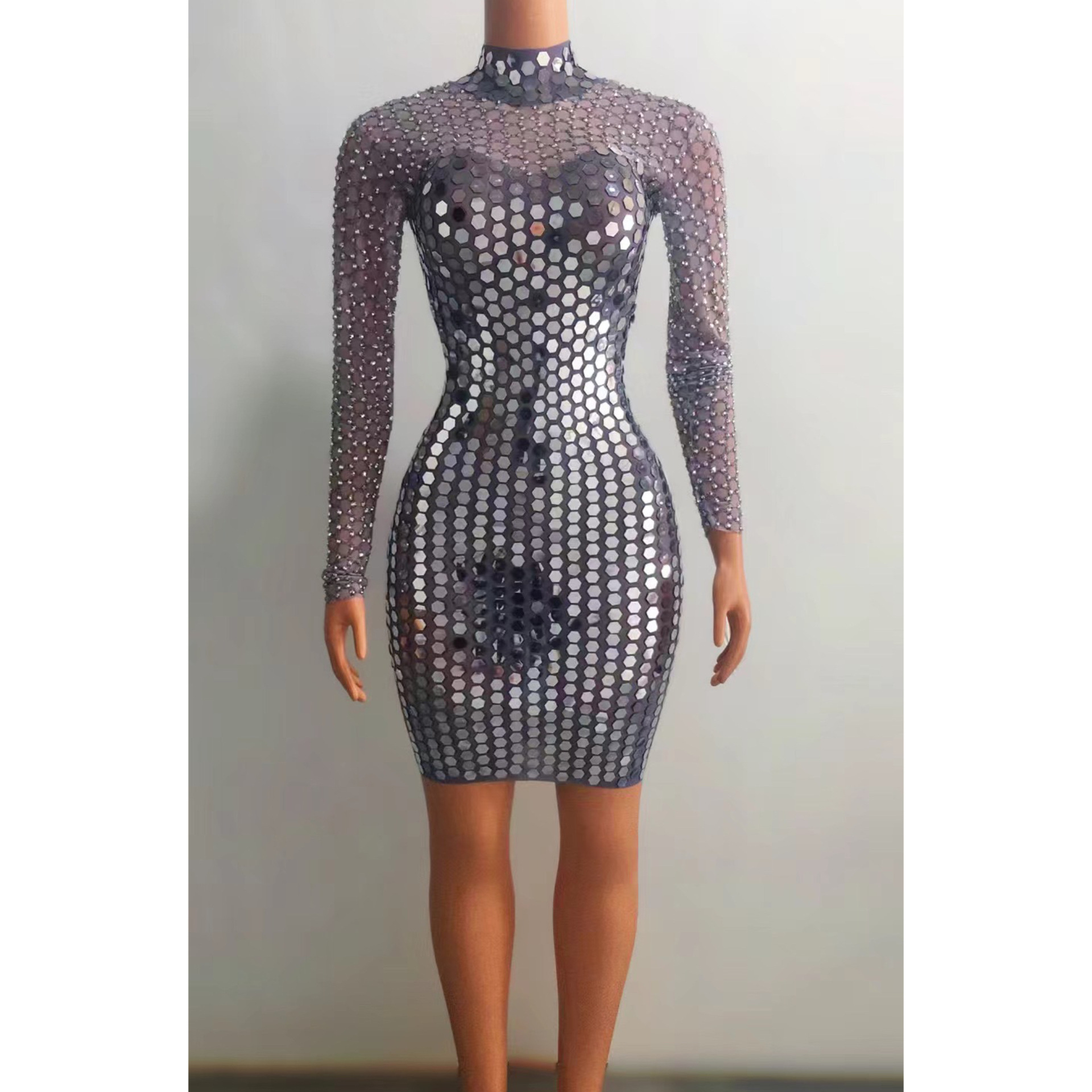 Pakaian Pertunjukan Klub Sarang Lebah Bar Penyanyi Wanita Seksi Slim Fit Payet Pesta Tim Dansa