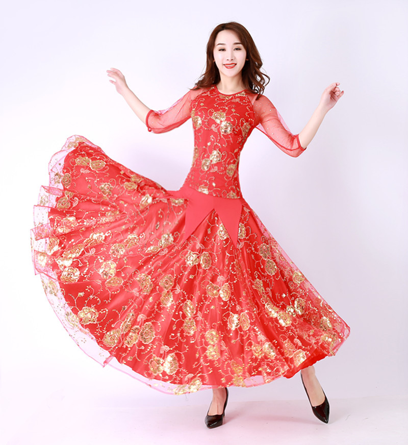 Setelan tari Modern rok dansa Waltz rok ayun dansa ballroom rok performa pertunjukan rok tari kompetisi