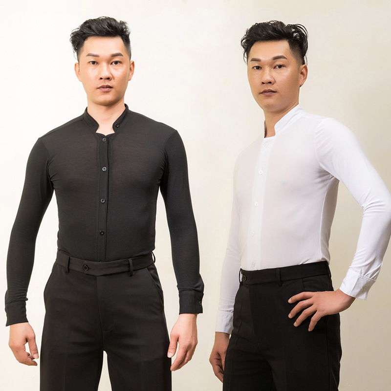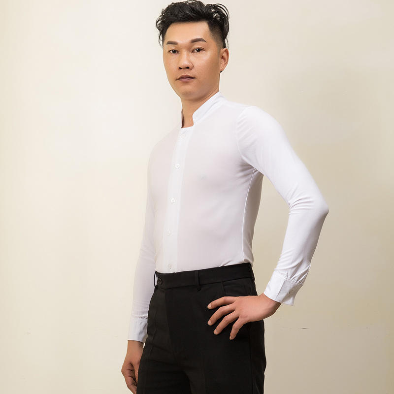 Baju dansa Latin profesional pria, baju lengan panjang kerah berdiri, pakaian dansa standar nasional, persahabatan, baju pria dewasa, baju dansa Modern profesional