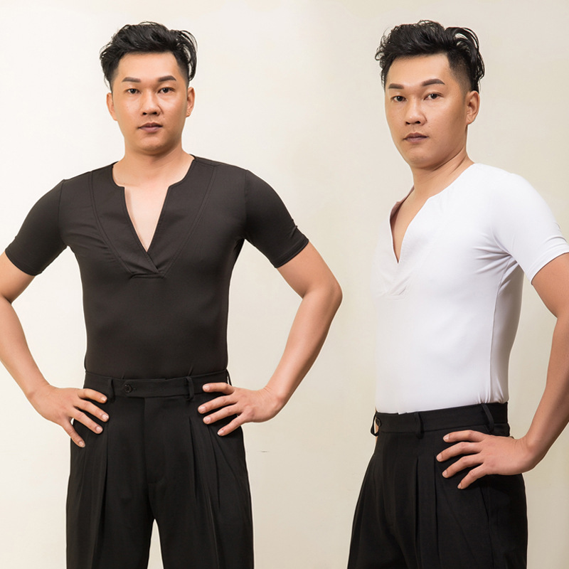 Pakaian dansa pria, pakaian latihan tari persegi tari modern standar nasional kerah V untuk lelaki