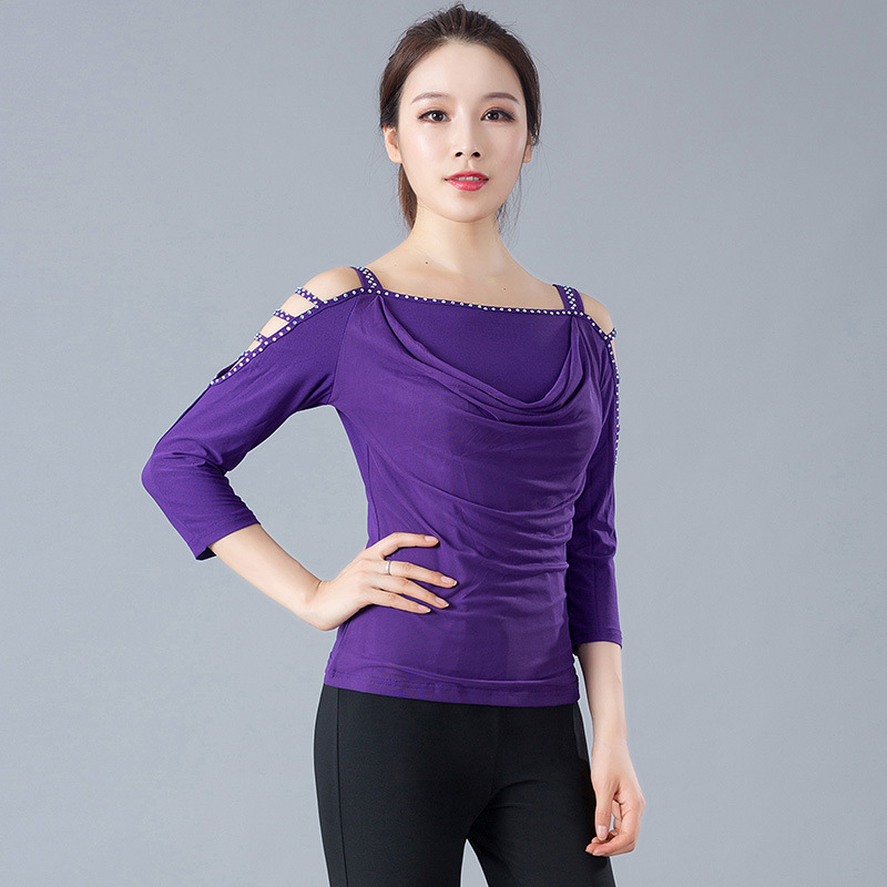 Baju dansa modern wanita, pakaian atasan tari sosial, pakaian latihan pertunjukan, baju dansa persegi panjang