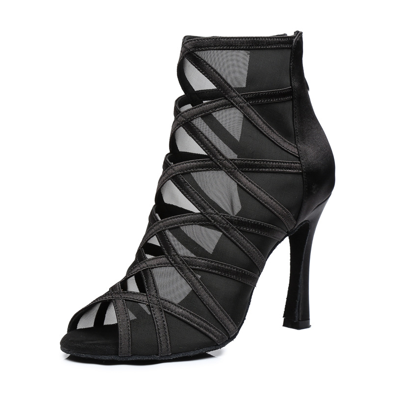 Pabrik disesuaikan wanita Latin sepatu dansa mid-high heel satin dalam ruangan bernapas perdagangan luar negeri grosir standar nasional persegi sepatu dansa