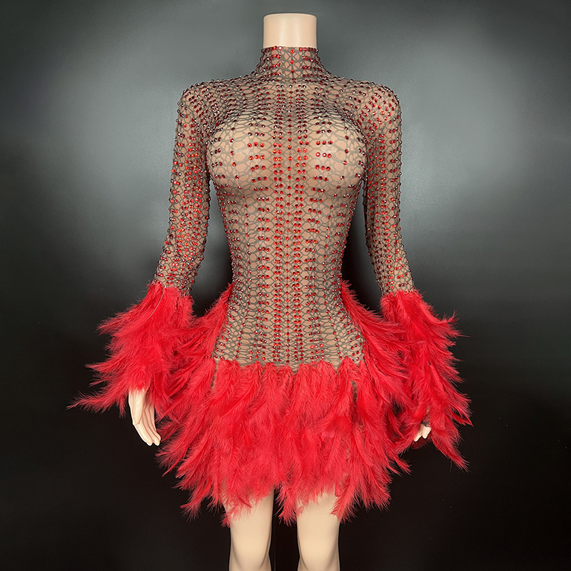 Diskon besar Eropa dan Amerika rok seksi tari Latin bulu pakaian tari standar nasional pakaian latihan temperamen pengiriman satu bagian ramping