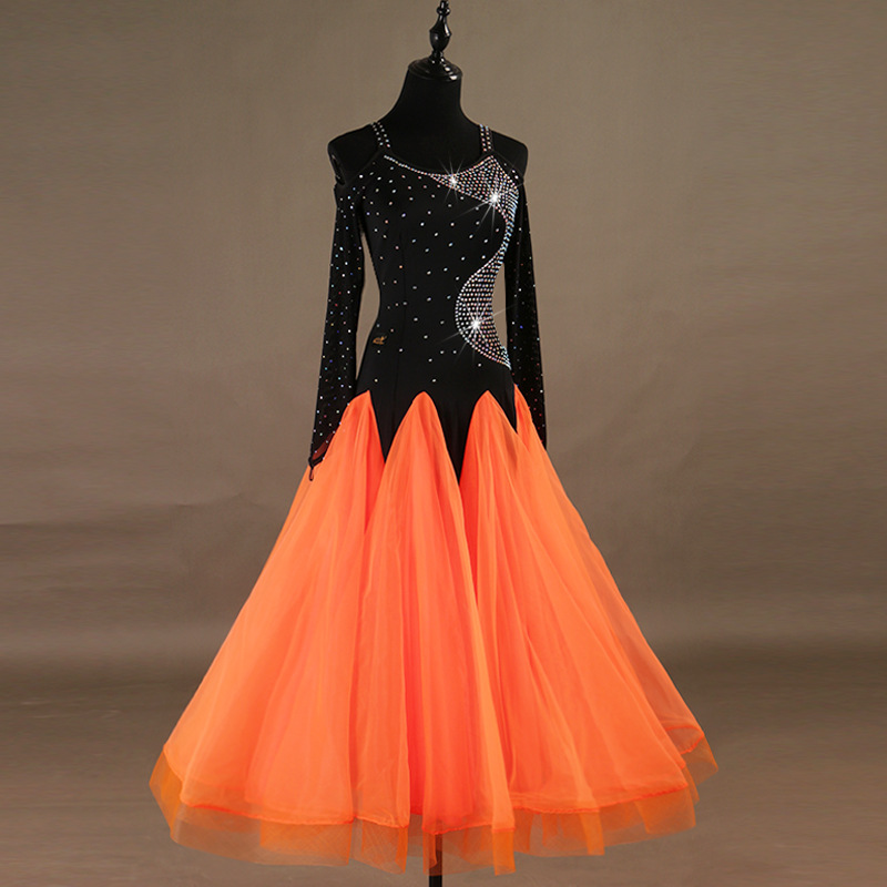 Gaun dansa Modern, kostum kompetisi, penampilan tari, rok Tango Waltz group, rok ayun besar, tari standar nasional