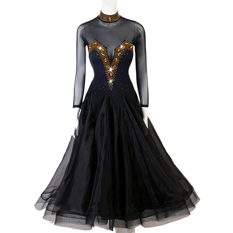 Gaun ayun tari modern turtleneck seksi setelan kompetisi dansa Waltz standar nasional tari ballroom M132