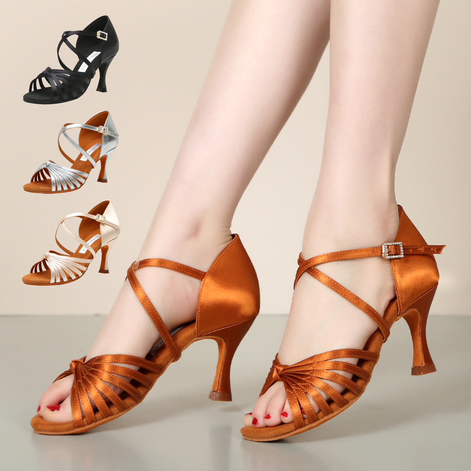 Sepatu dansa Latin wanita, hak tinggi dewasa sol lembut sepatu dansa standar nasional hak sedang menari