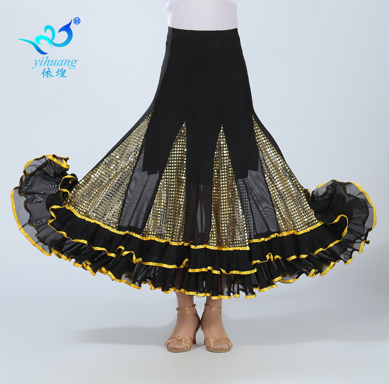 Rok dansa ayun besar, rok panjang berpayet tari persegi, rok dansa ballroom modern, rok Waltz standar nasional