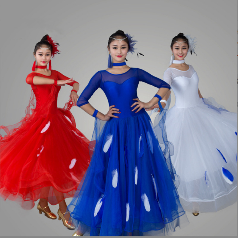Kostum dansa modern bulu baru gaun tari standar nasional rok kompetisi rok tari Waltz rok ayunan besar MD052