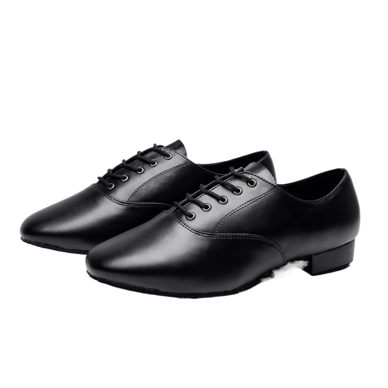 Sepatu dansa pria kulit asli, sepatu dansa Latin dewasa kulit sapi persegi, sepatu dansa standar nasional lunak untuk pria