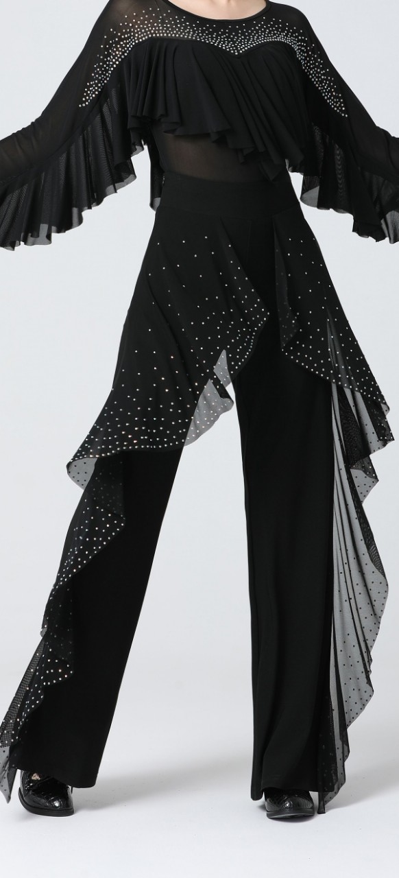 Celana dansa Latin wanita, pakaian tari modern berlian terang jaring standar nasional tari ballroom berombak elegan