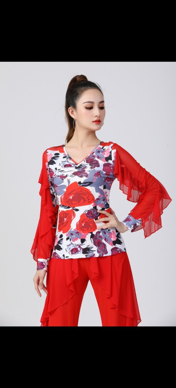 Pakaian dansa Latin Modern untuk dansa, baju atasan tari Modern, pakaian latihan guru wanita, pakaian dansa Modern