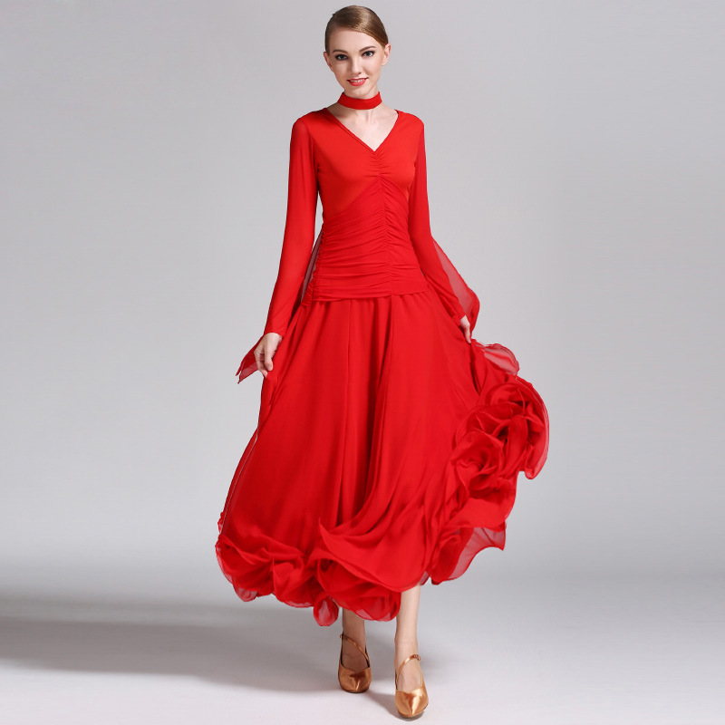 Pakaian dansa sosial Waltz baru, pakaian dansa persegi wanita, pakaian latihan dansa sosial, lengan panjang