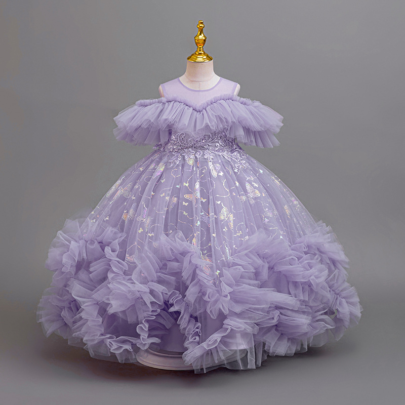 Rok Putri Pertunjukan Anak Perempuan Rok Tutu Kasa Kain Selubung Rok Cetak Bahu Gaun Pakaian Tari Ulang Tahun Host Anak Bunga