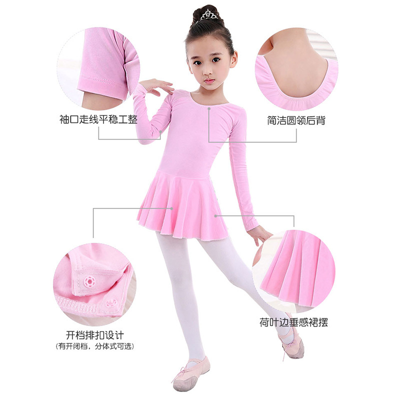 Pakaian dansa balet rok kain kasa anak-anak rok ruffle wanita lengan pendek latihan meningkatkan kinerja gaun lengan panjang celana ketat katun