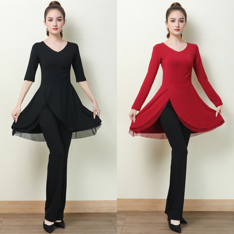 Baru pakaian dansa dalam persediaan wanita dewasa pakaian latihan setelan V-neck modal pelangsing pakaian dansa persegi