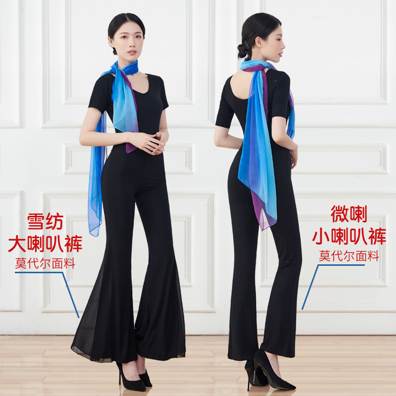 Celana dansa wanita modern klasik etnik persegi jazz pakaian latihan tubuh lurus celana panjang kaki lebar modal