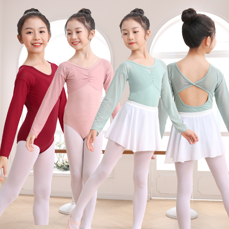 Pakaian dansa anak perempuan, baju latihan lengan panjang musim panas, pakaian balet dansa anak perempuan musim gugur dan musim dingin