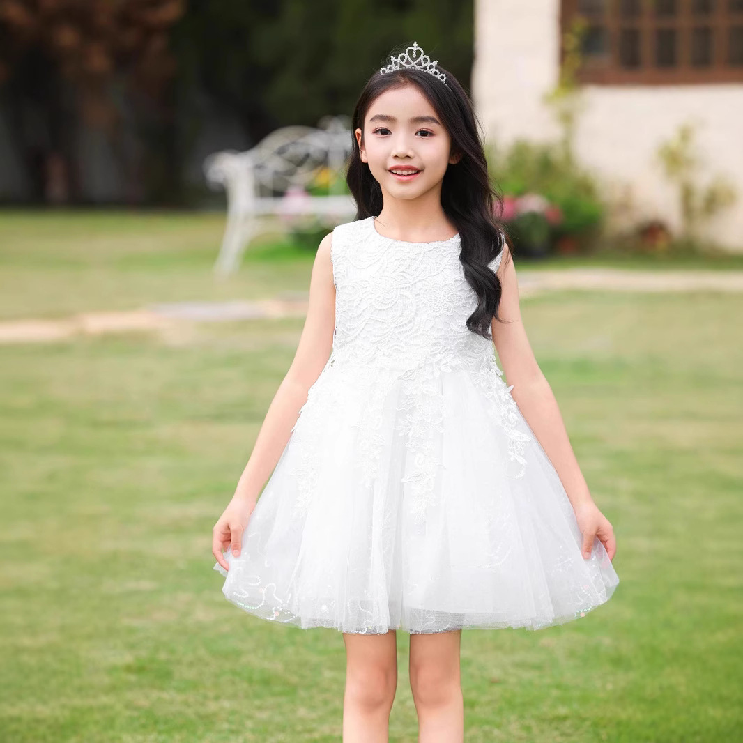 Gaun Anak Perempuan Kasa Putih Rok Putri Musim Panas Gaun Anak-anak Rok Pakaian Pertunjukan Hari Anak Balet
