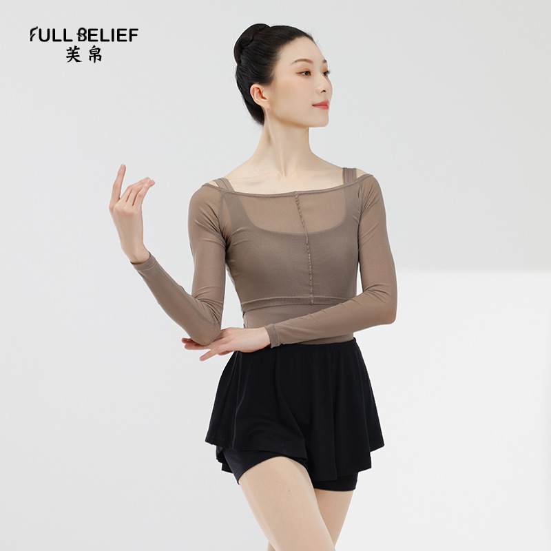 Blus jala tanpa bahu wanita untuk balet dan tari