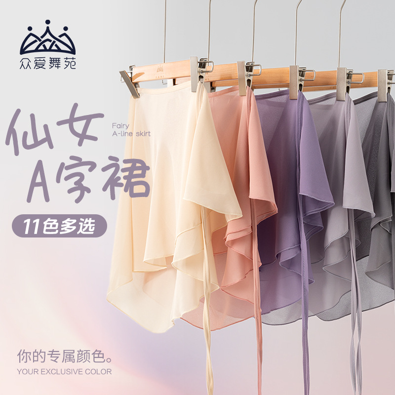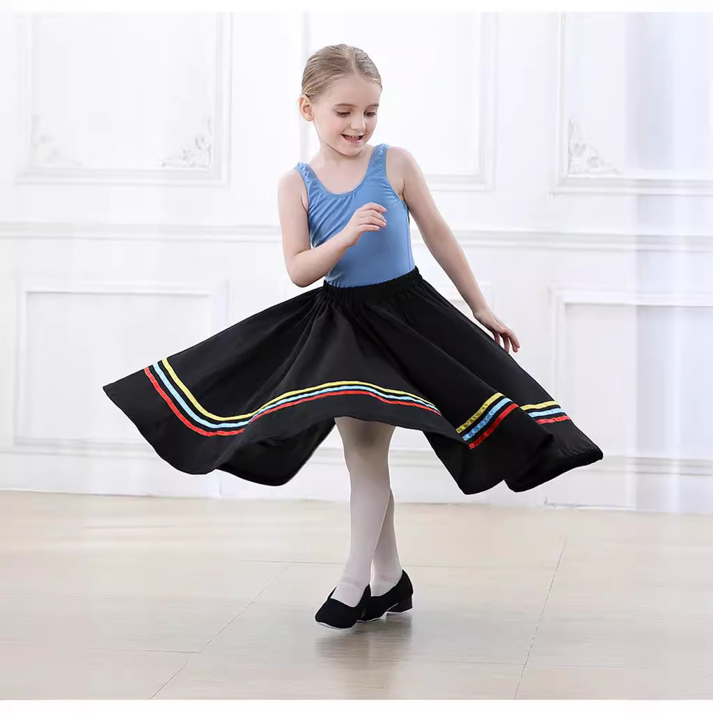 Pakaian dansa anak perempuan, rok latihan rok balet, rok satu potong, tari China, rok kasa sifon