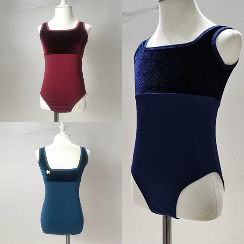 2023 musim panas baru rompi biru laut pakaian tari balet anak Perempuan ujian seni beludru brokat katun keunguan pakaian ujian tubuh merah