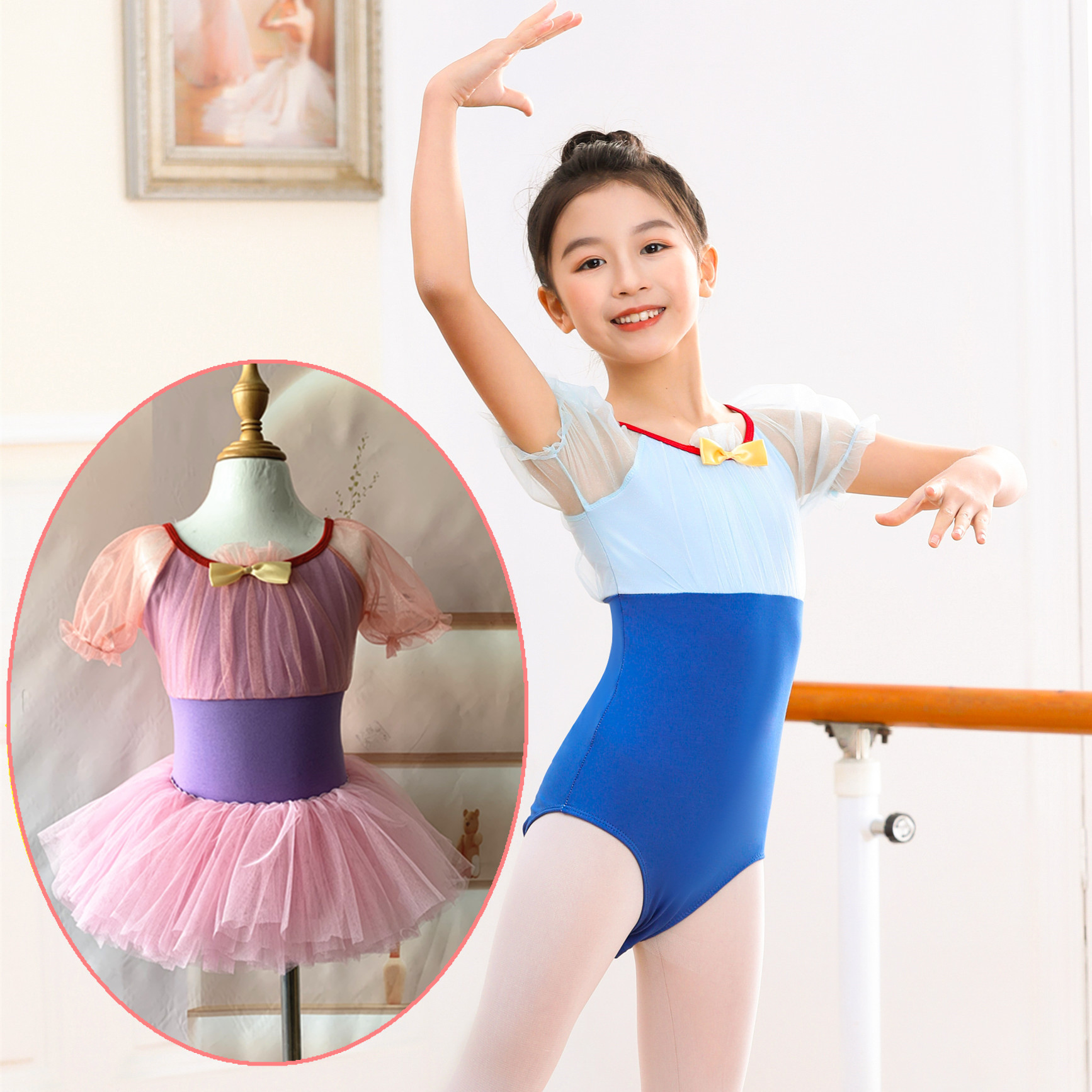 Baju dansa Anak perempuan lengan pendek, baju dansa anak perempuan, baju latihan satu potong, rok balet, pakaian badan anak perempuan