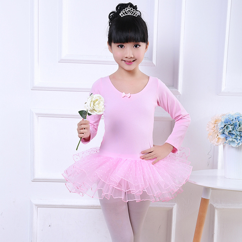 Rok balet anak perempuan, pakaian latihan dansa anak-anak musim semi dan musim panas lengan panjang pendek
