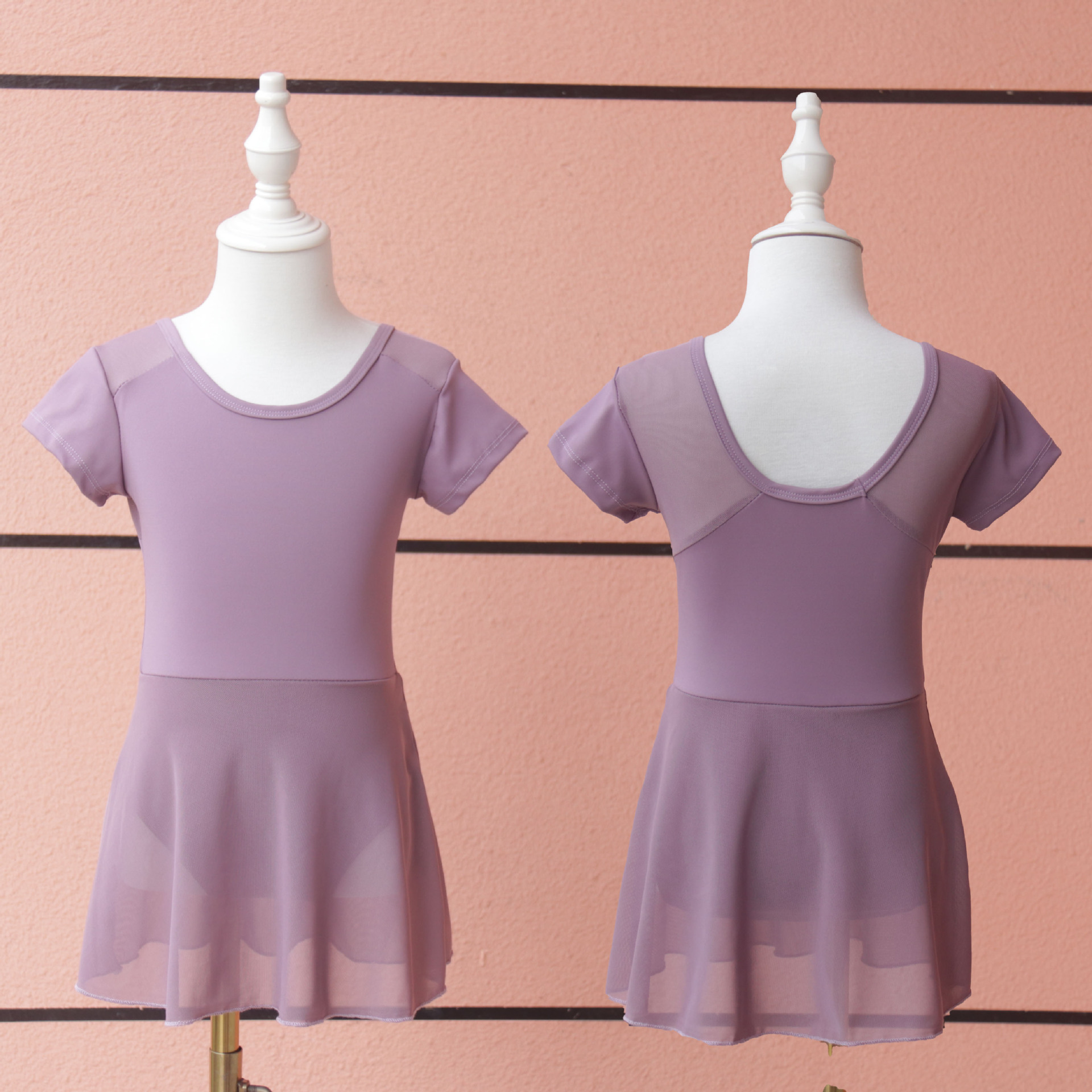 Pakaian dansa anak-anak, baju latihan dansa China lengan pendek musim panas wanita rok jala satu potong